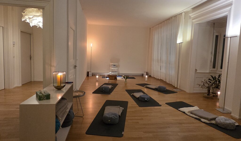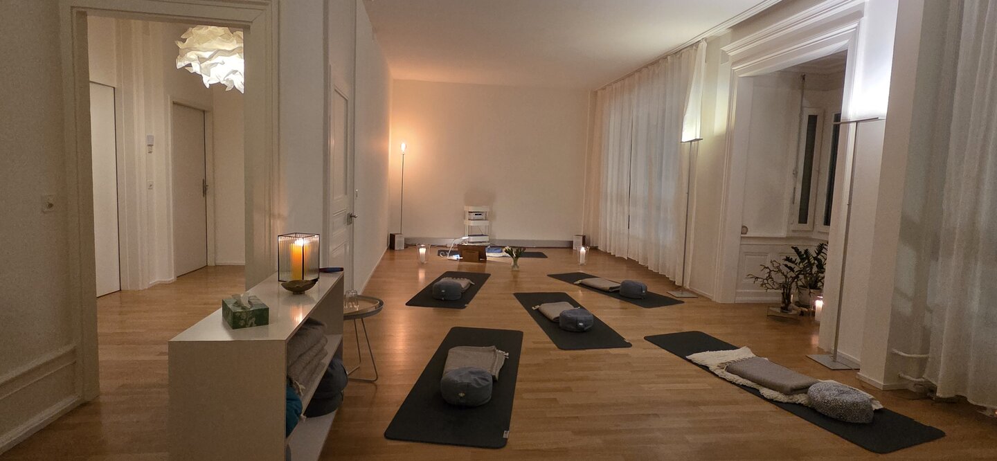 In der Raummiete inbegriffen sind die Nutzung der Teeküche und Toilette wie auch des zur Verfügung stehenden Materials wie Yoga-Matten, Decken, Kissen, Stühle.